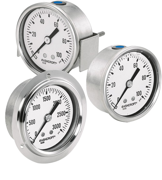 The Ashcroft 1008S/SL Center Back Pressure Gauge is field liquid fillable and field convertible for panel mounting, and is available in 63mm and 100mm dial sizes.