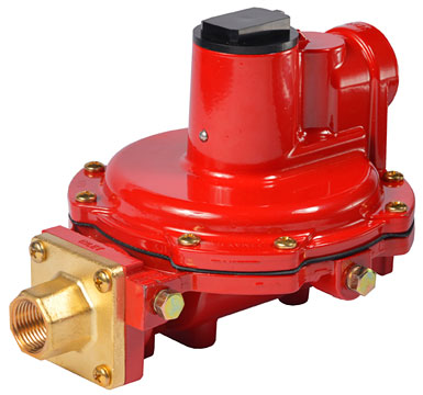 The Fisher R622H first-stage regulator is designed to reduce the tank pressure for the second-stage regulator in domestic applications. Inlet and outlet gauge taps allow for easy system testing. The combination of a high capacity relief valve and large vent provide overpressure protection that exceeds UL standards. When used in conjunction with an R622 or R652, the two-stage system will limit the downstream pressure from the second-stage to 2 psig even in a double failure situation.