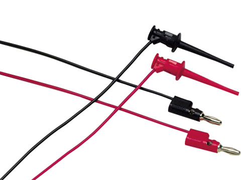 The Fluke TL950 mini-pincer test leads come in a pair (red, black) with multi-stacking 4mm banana plugs and mini-pincers. These Fluke test leads are 90 cm long with PVC insulated leads and the mini-pincers open to 2.3 mm.
