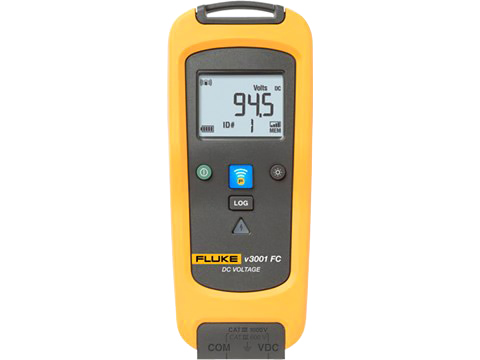 The Fluke V3001 FC Wireless DC Voltage Module is fully functional DC voltage meter that wirelessly relays DC voltage measurements to other Fluke Connect™ enabled master units including the Fluke 3000 FC DMM, Fluke Ti200/300/400 Infrared Camera, PC via optional pc3000 FC Adapter and the Fluke Connect Mobile app. The V3001 FC ships with TL224 test leads and AC285 Alligator Clips and a magnetic hanging strap.