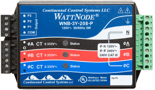 The HOBO WattNode Branch Circuit Transducer Sensor provides accurate kWh measurement at a low cost to meet your needs for sub-metering, net-metering, energy management, and performance contracting applications. This WattNode kWh Transducer works with Magnelab AC Current Transformers and a Pulse Input Adapter, or a HOBO® Data Node pulse input port to provide True RMS kilowatt hours of energy used, even for loads with non-sinusoidal waveforms. Because these sensors tie directly into the line, they should be used only by qualified personnel. This model supports up to 3 separate 120 VAC single-phase branch circuits or individual 120 VAC phases of a 3-phase wye-connection 208/240 VAC circuit.