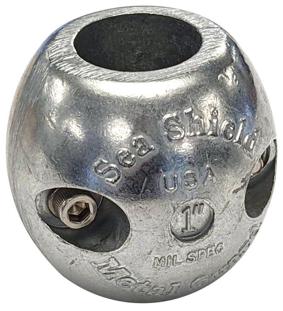 The KPSI body clamp anode is a 2.2in (5.6cm) diameter zinc sphere whose two halves bolt on to the transducer housing. The anode weighs approximately 13oz (370g).