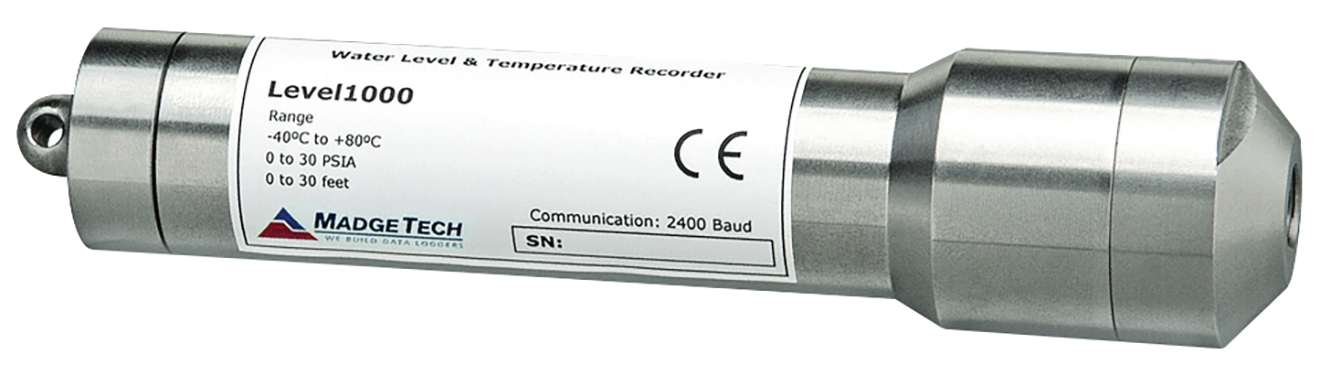 The MadgeTech Level1000 recorder is a battery powered, stand alone, submersible water level and temperature recorder. The compact and portable MadgeTech Level1000 recorder is an all-in-one, easy-to-use device that will measure and record up to 16,383 measurements per channel. The storage medium is non-volatile solid state memory, providing maximum data security even if the MadgeTech Level1000 recorder’s battery becomes discharged. The device can be started and stopped directly from your computer, and the small size of the MadgeTech Level1000 recorder facilitates storage almost anywhere.