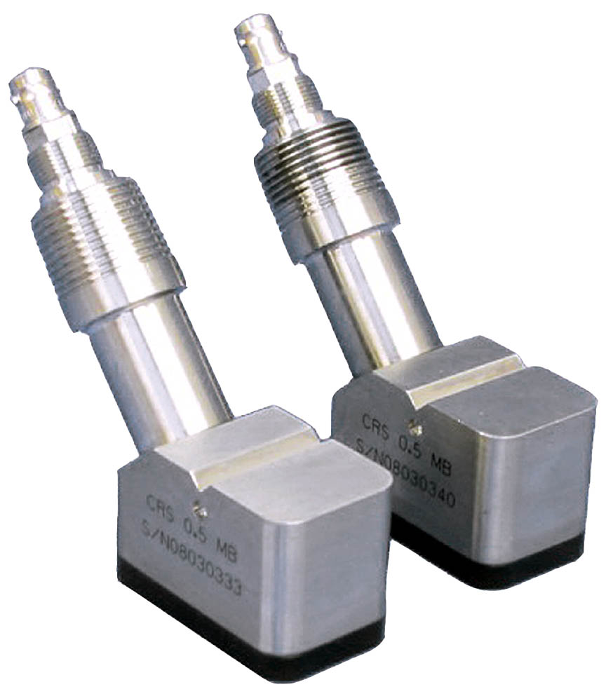 The Panametrics C-RS ultrasonic flow transducer is used exclusively with the Panametrics line of ultrasonic flow meters. These ultrasonic flow transducers measure the flow rate of sonically-conductive liquids through pipes having diameters between 2 inches (5 cm) and over 300 inches (7.6 m). Such measurements are typically independent of the pipe material. The C-RS ultrasonic flow transducer operates in process temperatures from -40 to 302°F (-40 to 150°C).