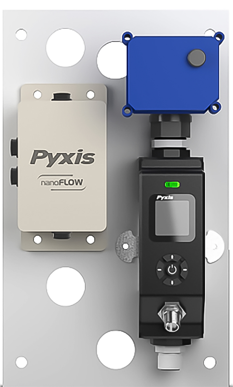 The Pyxis FS-100 NanoFlow Sample Flow Measurement & Regulation Control Module is a stand-alone water flow measurement and control solution. The Nano-Flow is designed for use in critical cooling and process water sample flow applications. This unique platform provides precise flow measurement and regulation. Furthermore, the Nano-Flow module is offered in a micro-panel design and is equipped with the Pyxis FS-100 ultrasonic flowmeter with a display, which directly controls a pre-mounted regulating valve through a user interface.