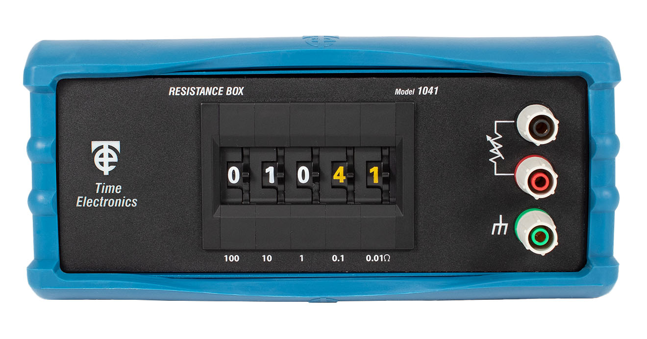 The Time Electronics 1041 decade resistance box offers small increment steps, 0.01Ω, over a range of 0.01Ω to 1kΩ. Special attention has been given to the reliability of operation for the 1041. A special multiple gold contact arrangement ensures low contact resistance and continued operation even if a contact fails.