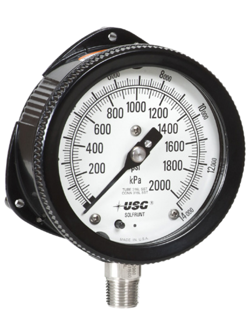A 6in dial size is available for when the distance between the installation point and the point of view of the operator requires larger, easier to read measurement graduations(1931 dry case only). Both models come with 316L stainless steel wetted parts, bourdon tube, and a high temperature tested acrylic window. Shatter resistant glass is available for 4.5in dials.