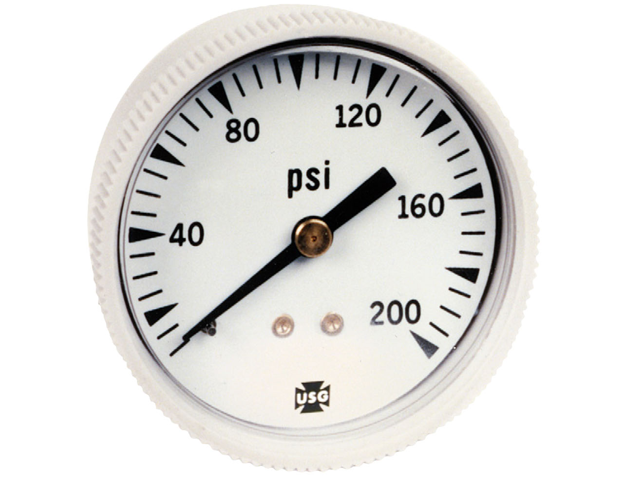 The Model P590 is a general purpose commercial gauge with a light weight grey ABS case that is corrosion and weather resistant. This pressure gauge has a brass socket and phosphor bronze or beryllium cooper bourdon tube.